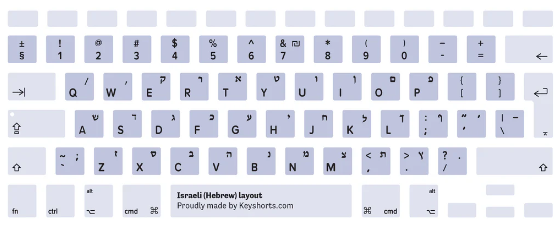 *English/Hebrew Keyboard Layout (Please see last photo for layout)