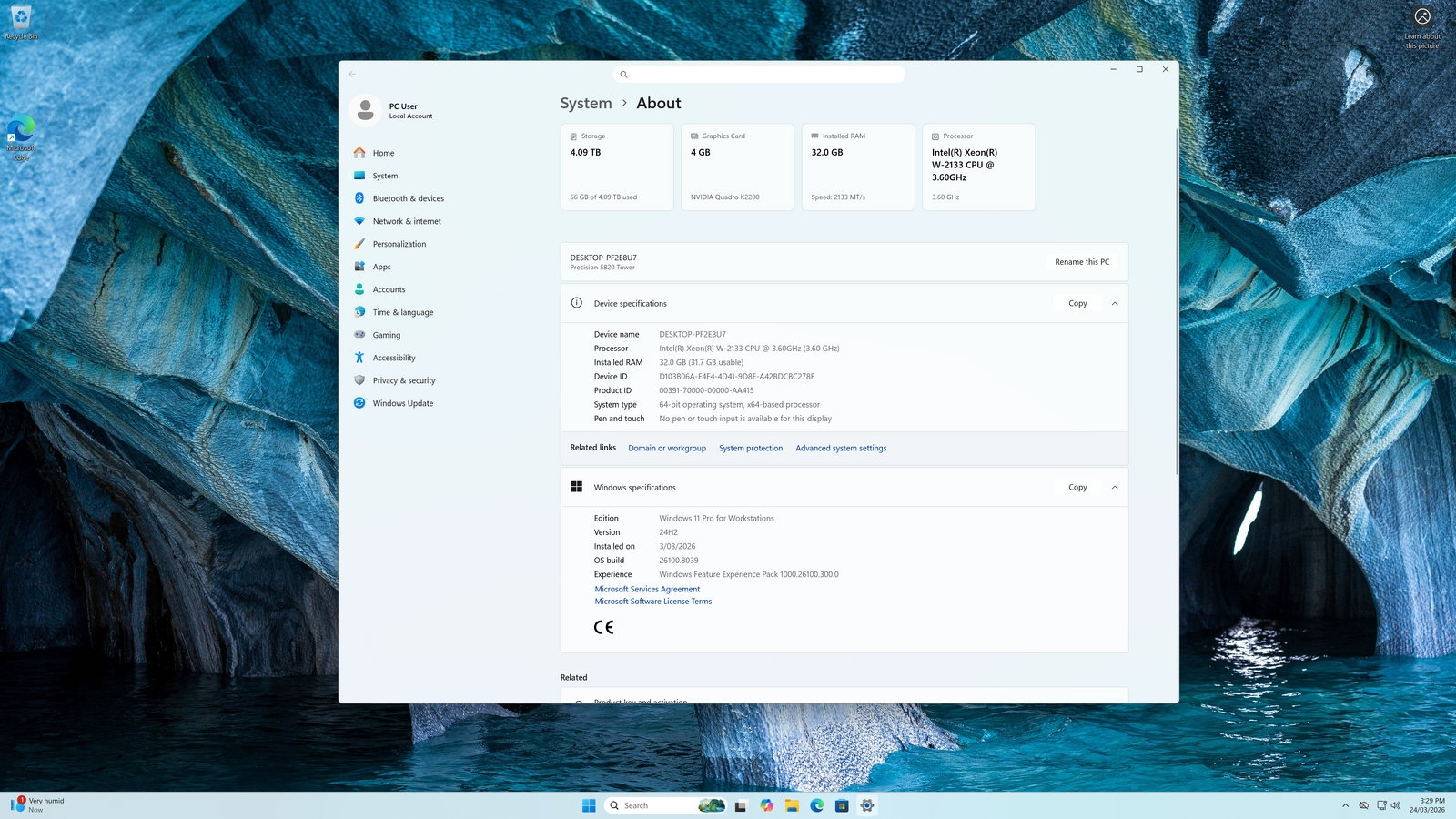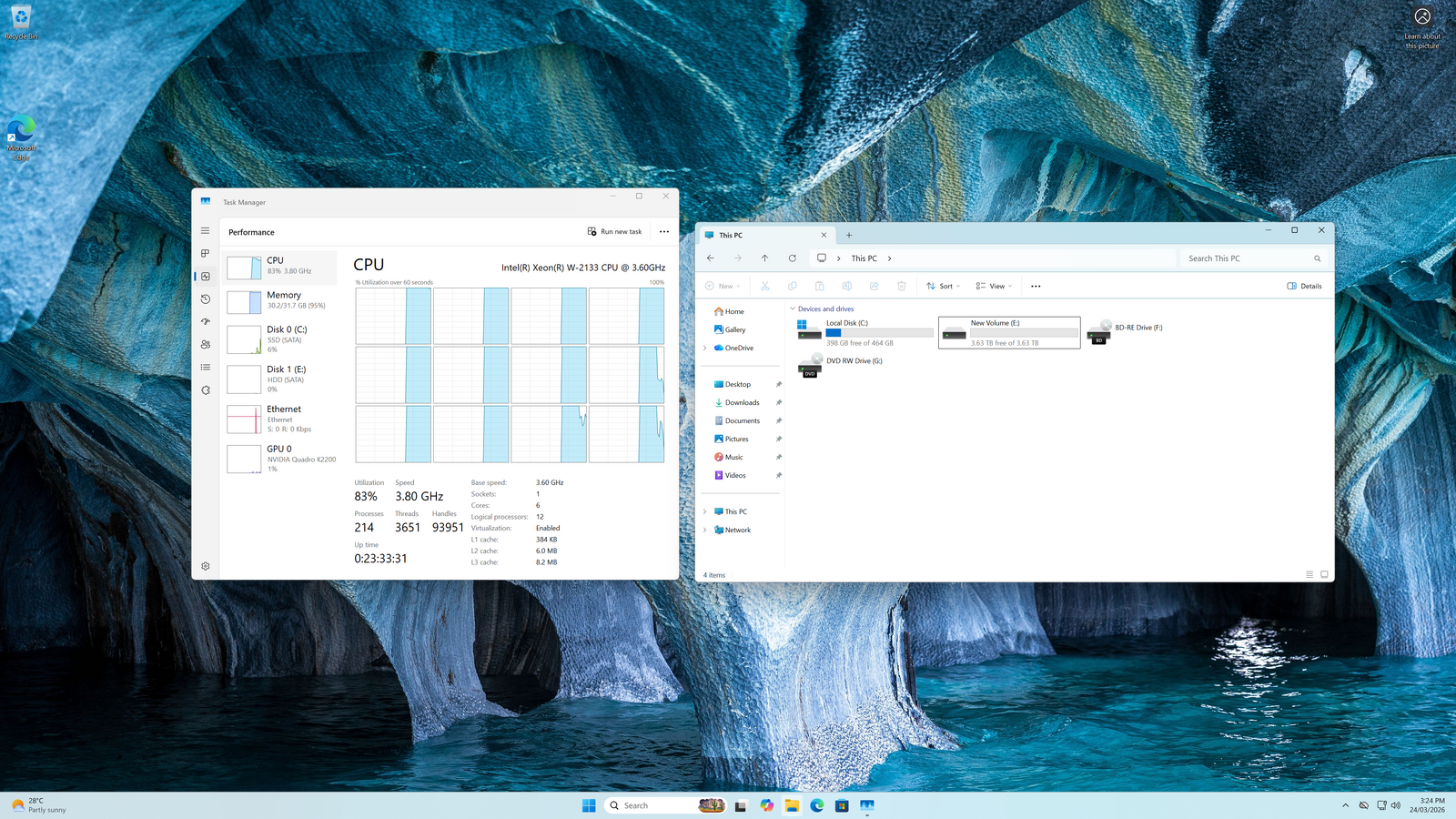 Full CPU Description Intel Xeon W2133@ 3.6Ghz 6 Core/ 12 Threads, 3.9GHz Boost