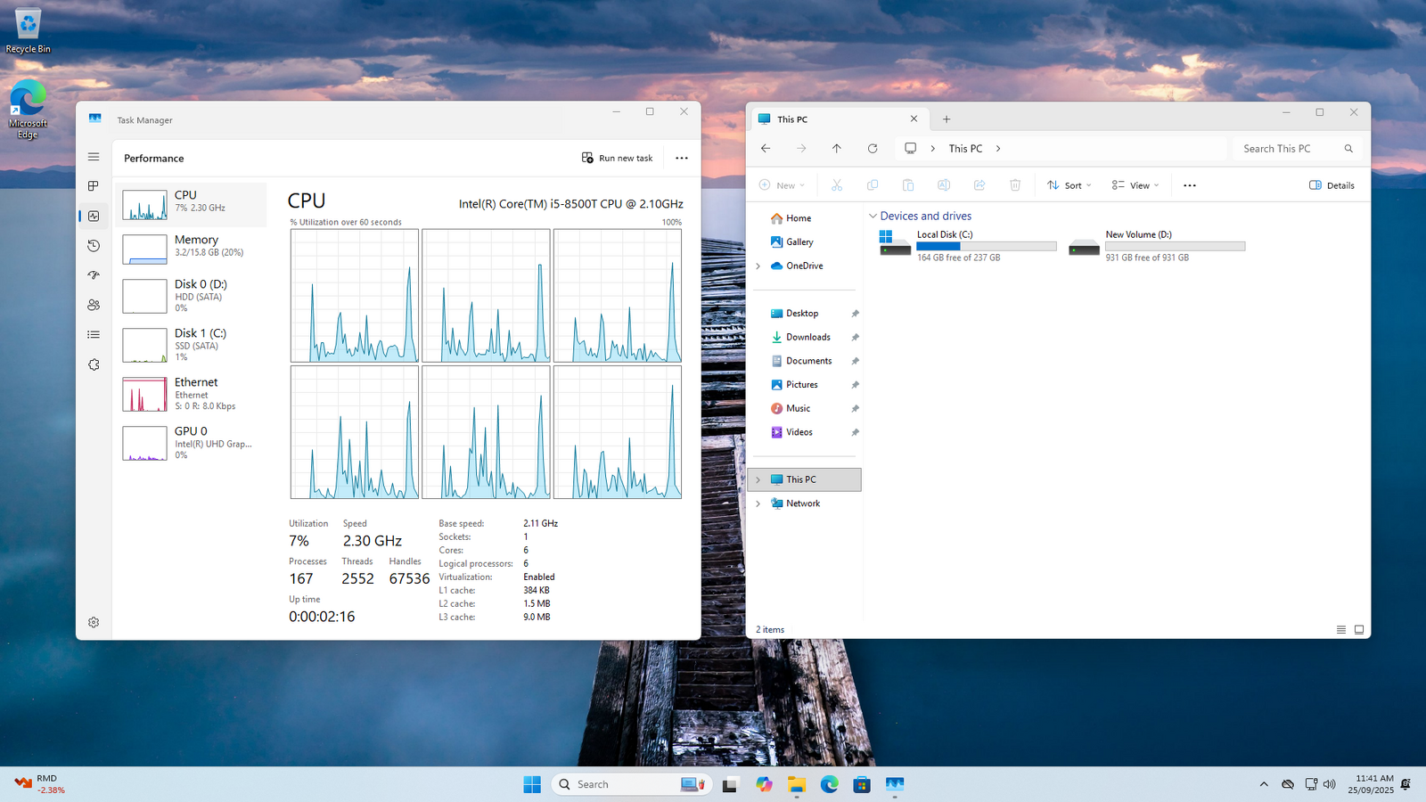 • Intel i5 8500T 2.1GHz 6 Cores/ 6 Threads 3.5GHz Boost