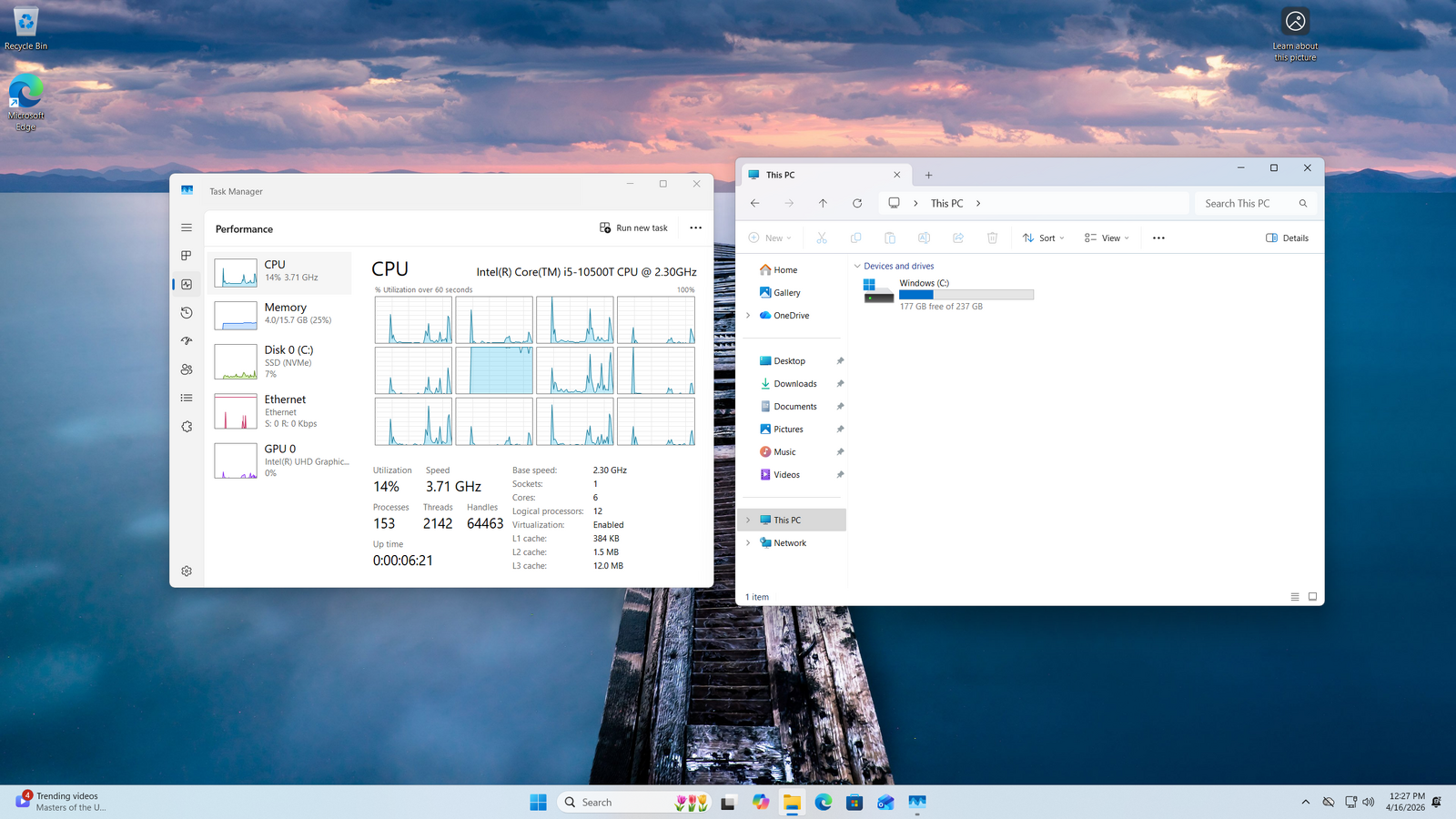 • Intel i5-10500T 2.3GHz 6 Cores/ 12 Threads, 3.8GHz Boost