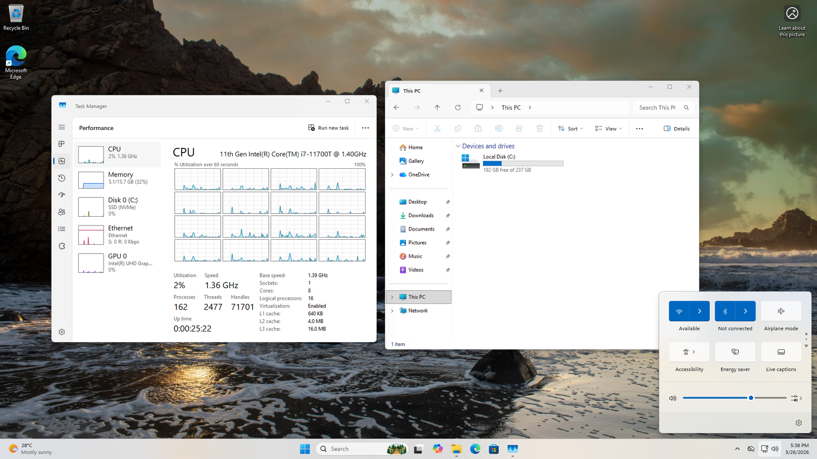 Full CPU Description Intel i7 11700T @ 1.4Ghz 8 Cores/ 16 Threads, 4.6GHz Boost