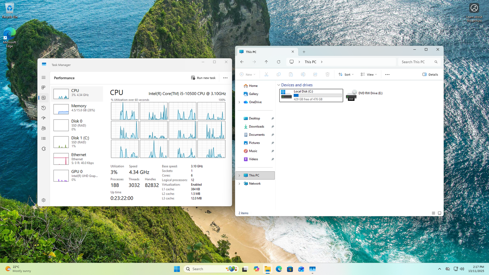 Full CPU Description Intel i5 10500 3.1GHz 6 Cores/ 12 Threads 4.5GHz Boost