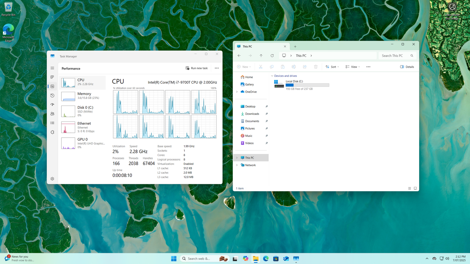 Full CPU Description Intel i7 9700T @ 2GHz 8 Cores/ 8 Threads, 4.3GHz Boost