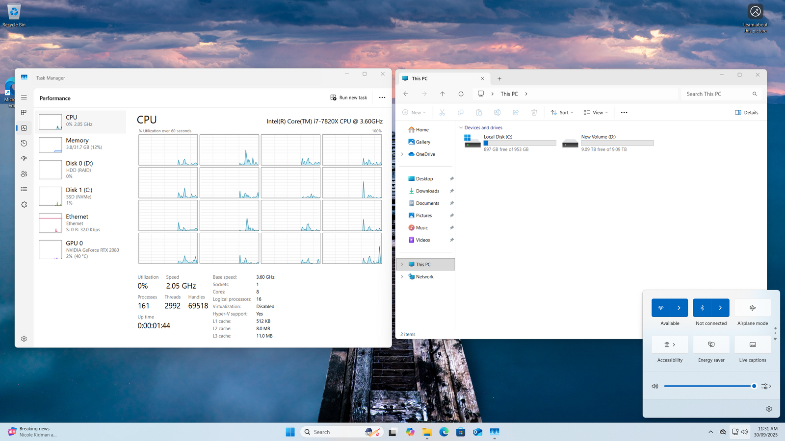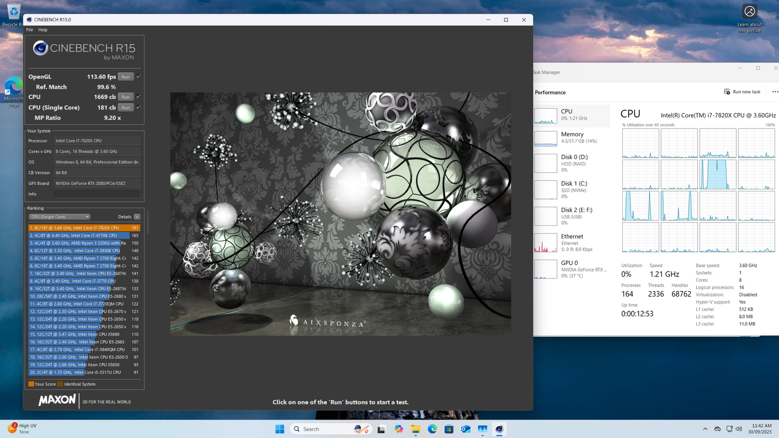 • Intel i7 7820X @3.6Ghz, 8 Cores/ 16 Threads, 4.5GHz Boost