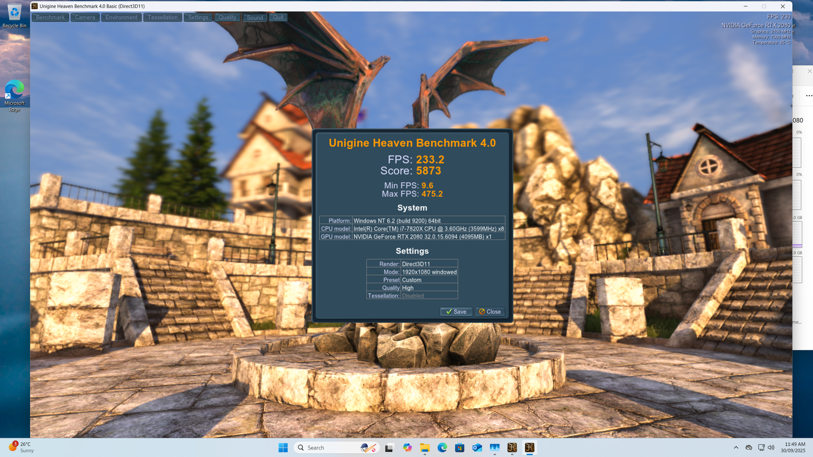 • Unigine Heaven Score - 233FPS @1080p High settings