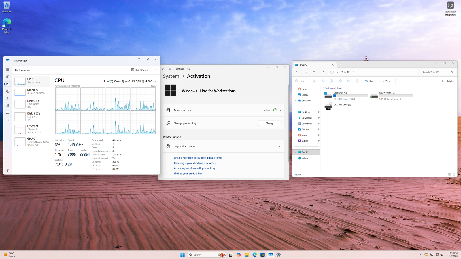 • Intel Xeon W2125 @4Ghz, 4 Cores/ 8 Threads, 4.5GHz Boost
