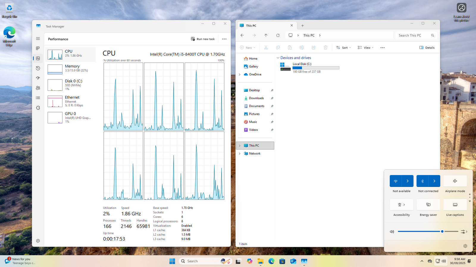 Full CPU Description Intel i5 8400T @1.7Ghz 6 Cores/ 6 Threads 3.3GHz Boost